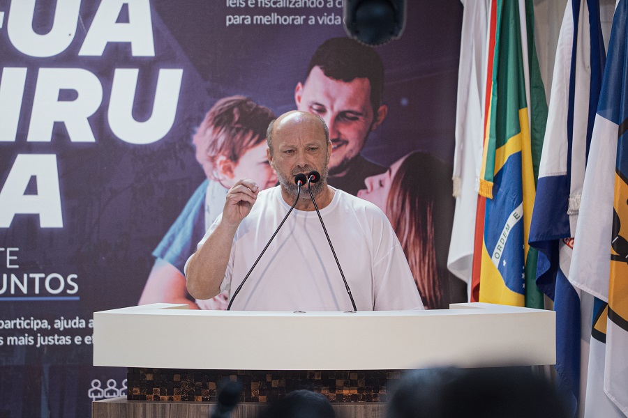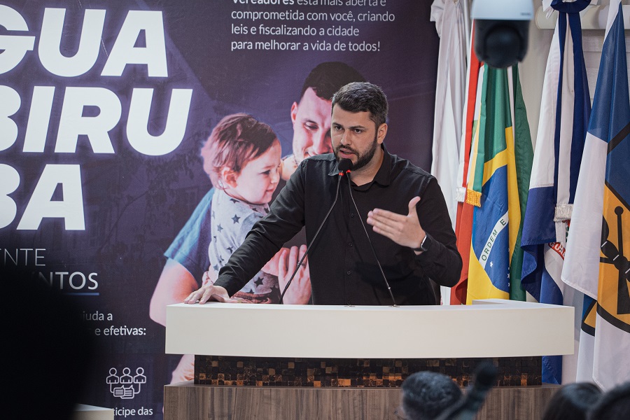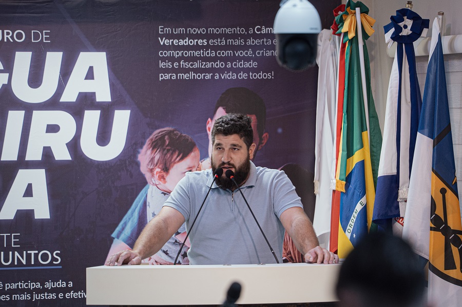 O vereador iniciou a sessão saudando os colegas vereadores, servidores da Câmara e todos os que acompanham pelas redes sociais. O tema principal da sua fala foi a inauguração da nova estação de tratamento da Guabiruba Saneamento no município.