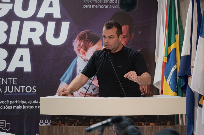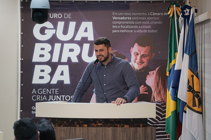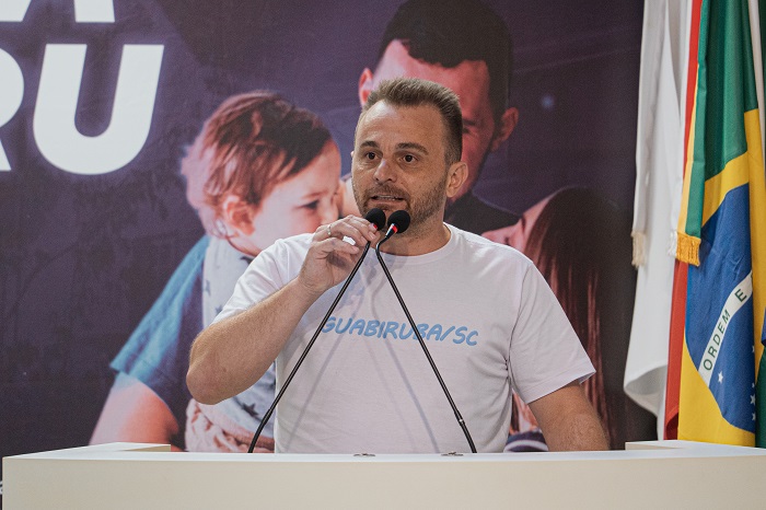 O vereador iniciou a sessão parabenizado Marcos por representar dignamente o nome de Guabiruba, sugerindo que os empresários deveriam reconhecer seu valor para a cidade.